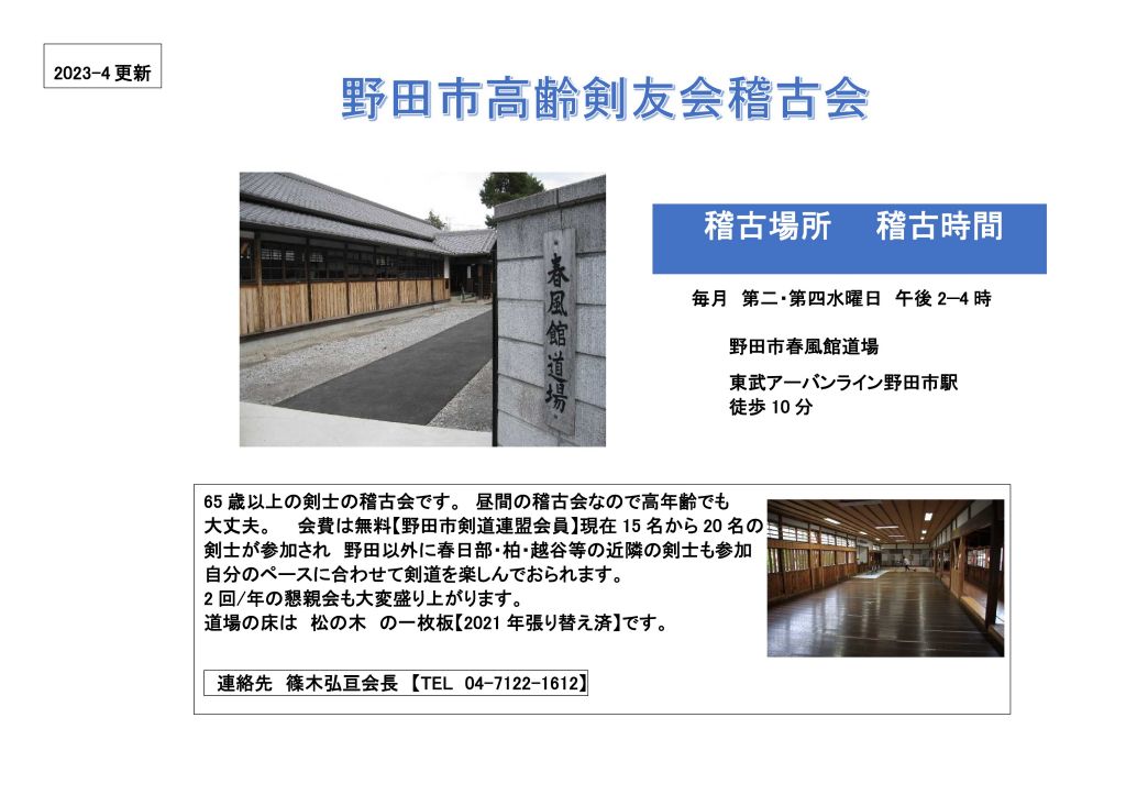 野田高齢剣友会【春風館道場】